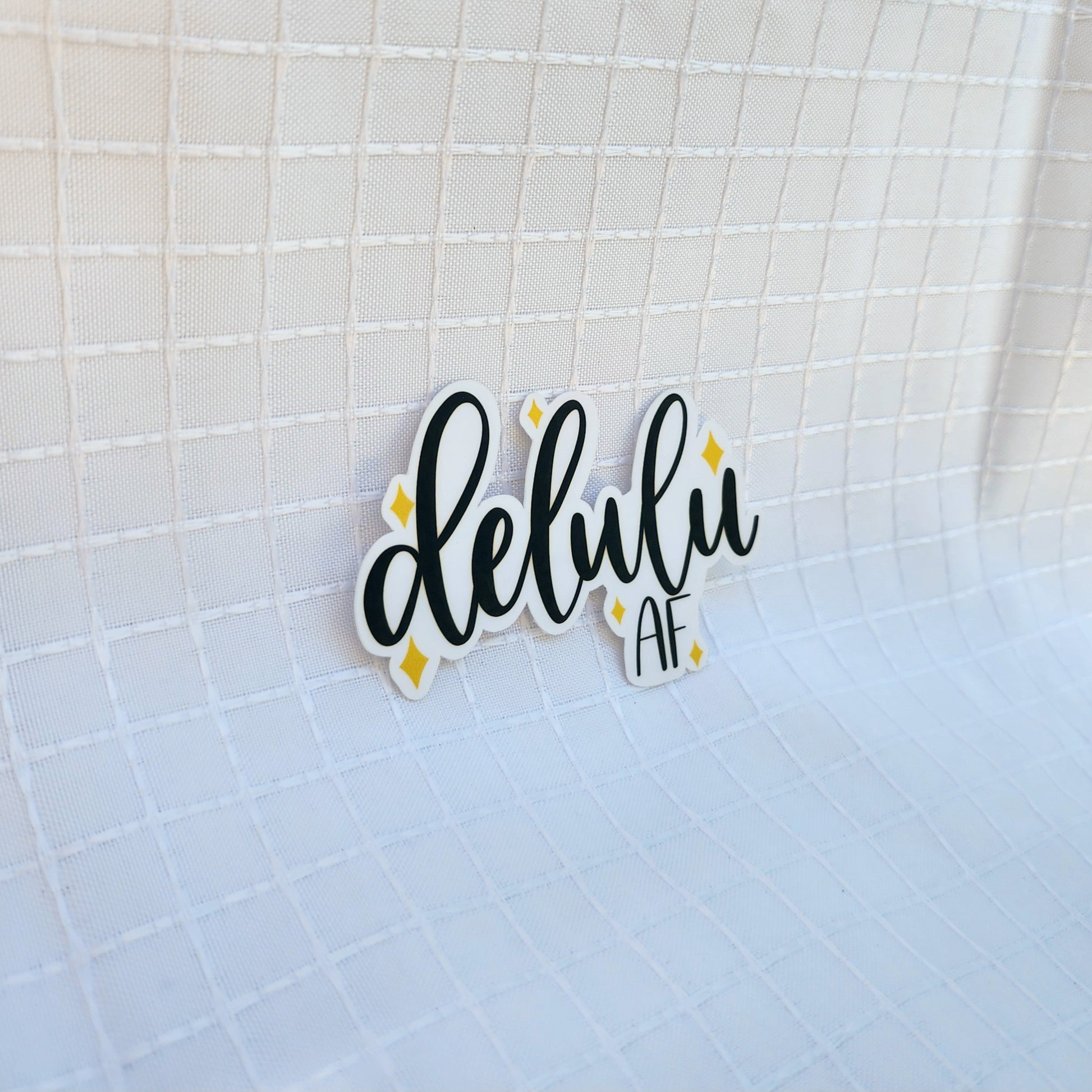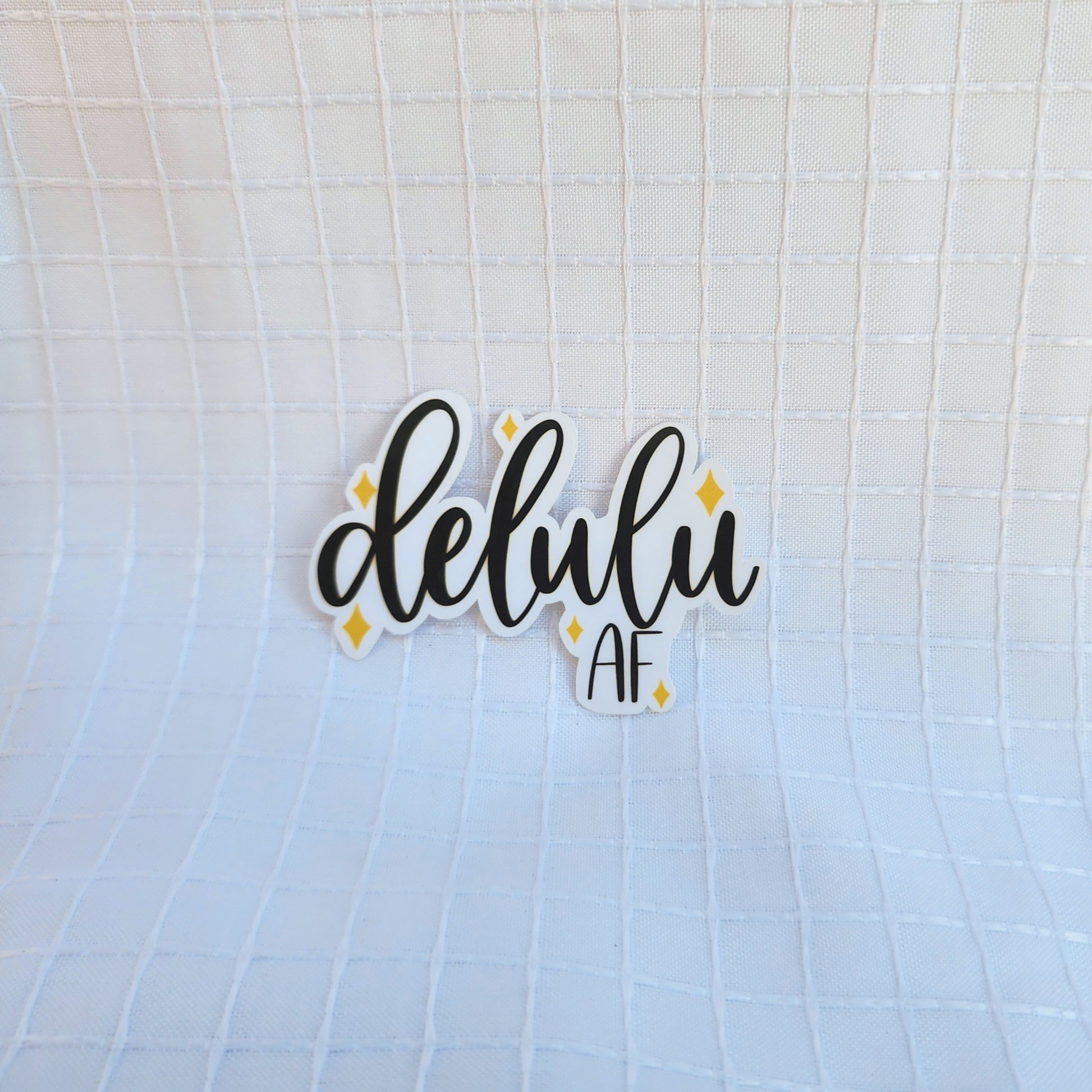 Embrace your delulu side with the Delulu AF sticker, a hilarious way to declare you’re living in your own starry, sparkling reality. This sticker features a fun, bold design with an optional star holographic finish that catches the light and adds extra shine to your notebooks, laptops, or water bottles. Perfect for anyone who knows that we're all a little delulu at the end of the day.